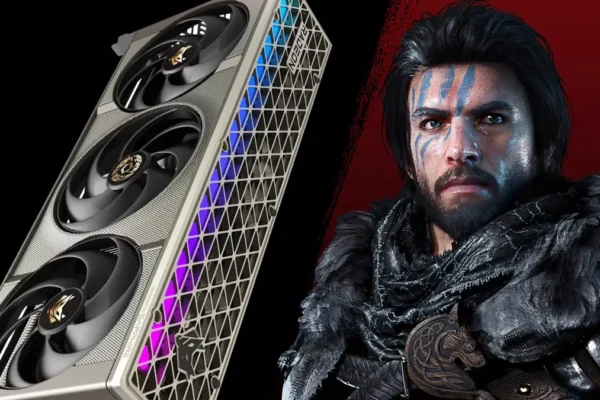 Notícia sobre a venda da AMD Radeon RX 9070 XT na Amazon, com benefício de código grátis para Crimson Desert e desempenho em jogos 4K.