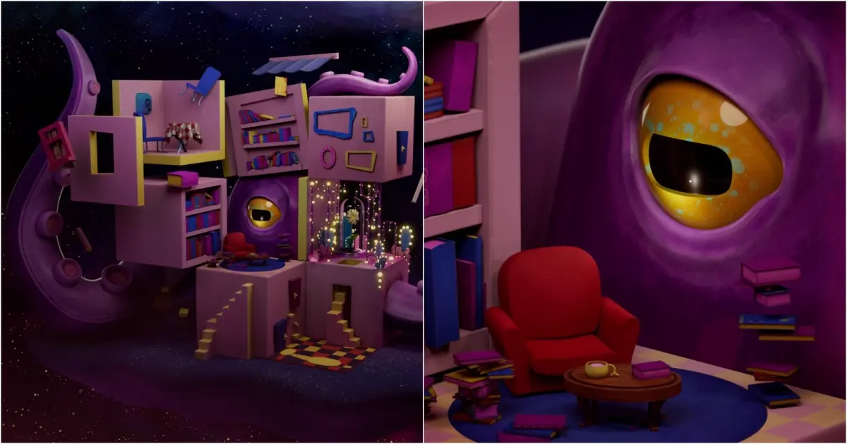 A cena foi produzida usando Maya, Substance 3D Painter e Nuke e apresenta uma imagem vibrante em estilo sutilmente pictórico, com interiores acolhedores e iluminação quente.