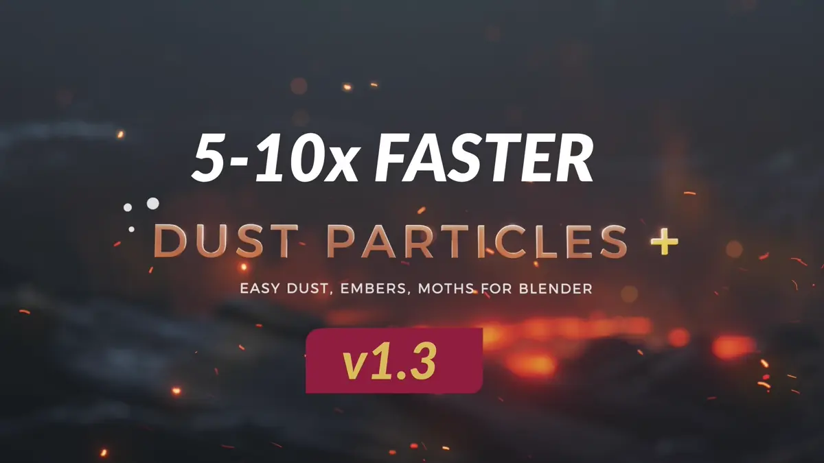 Dust Particles+ 1.3 para Blender reescreveu o núcleo de renderização e passa a ser 5–10x mais rápido graças à adoção de sprites baseados em pontos com mapeamento UV virtual.