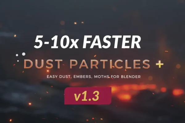 Atualização do Dust Particles+ para Blender melhora desempenho em 5 a 10x, usando sprites baseados em pontos com mapeamento UV virtual, beneficiando versões Free e Pro.