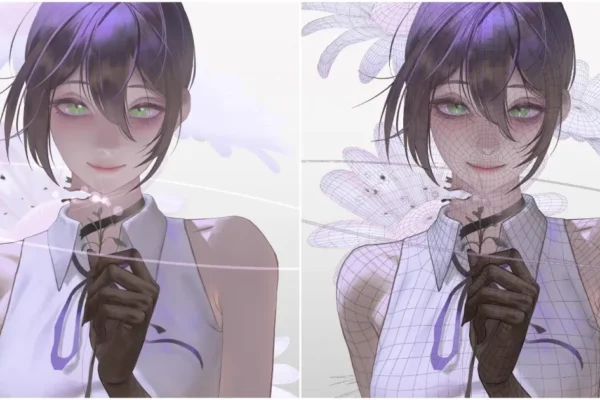 Artista cria uma versão 3D pintada à mão de Reze de Chainsaw Man usando ferramentas como Blender e ZBrush, destacando técnicas de modelagem e renderização.